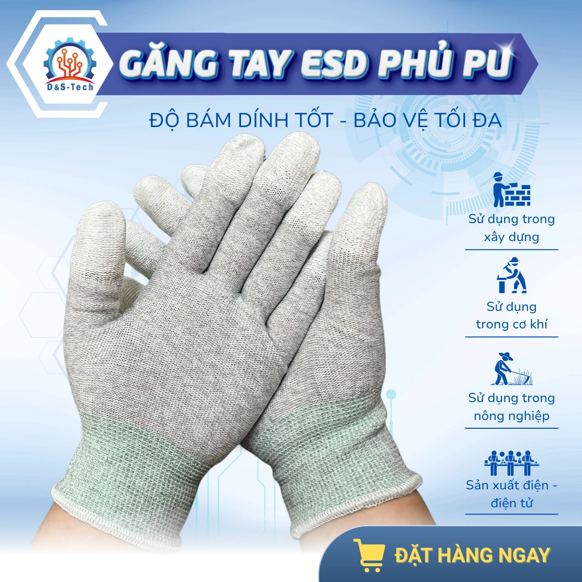 Găng tay phủ ngón PU cacbon chống tĩnh điện (ESD)